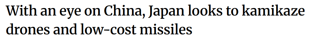 日本这种贼喊捉贼、拿中国当假想敌大肆提高自身军事能力的做法屡见不鲜了。“着眼中国,日本正致力于研发自杀式无人机和低成本导弹”——香港《南华早报》本月初也发表报道称:日本正计划引入一批自杀式无人机和低成本导弹,目的是针对包括中国在内的“地区威胁”提高威慑力。